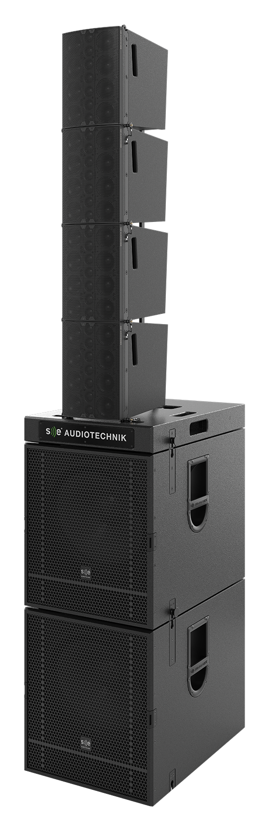 Die herausragendste Eigenschaft der Modelle mit einem 15″ Tieftöner ist deren einfaches Handling im Aufbau und beim Transport in Verbindung mit der beeindruckenden Ausgangsleistung  im Betrieb. Bedingt durch die sehr kompakten Maße spart man Platz im Lager und beim Transport, der Aufbau geht schneller und leichter von der Hand und man spart Männer und Muskelkraft – vor allem wenn einzeln oder im Array geflogen wird. Die 15″ Woofer verfügt über eine 3″ Schwingspule, so bringen auch die Kleinsten in unserer Familie bereits 136 dB max. SPL auf die Bühne. Die passiven 15″ Subwoofer haben  eine Belastbarkeit von 1.600 Watt Peak, in den Aktiven ist ein 800 Watt Class-D Amp verbaut.