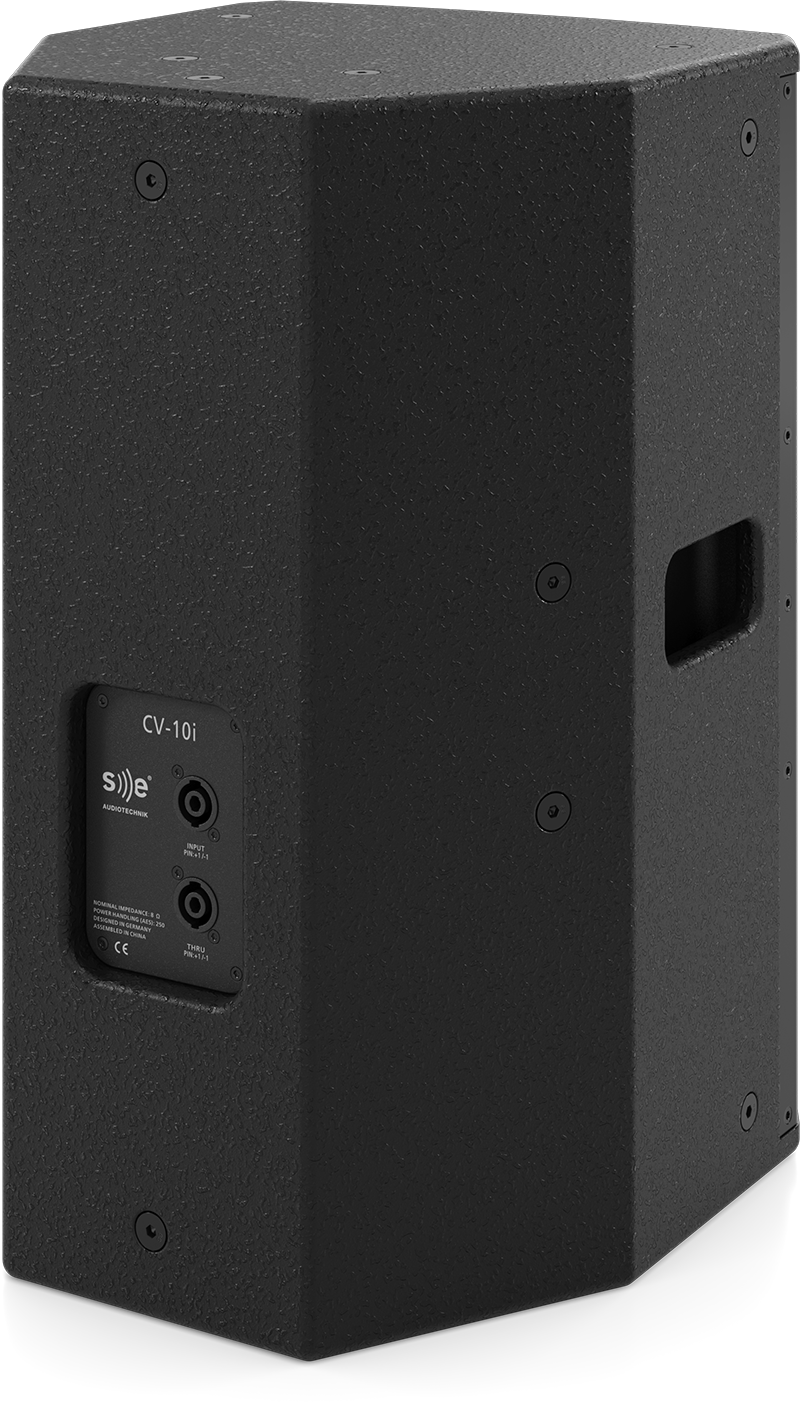 Der 10″-Tieftöner ermöglicht es, die Grundfläche des Lautsprechergehäuses klein zu halten und dennoch satte und definierte tiefe Frequenzen zu reproduzieren. Der 1″-Kompressionstreiber mit Horn deckt die mittleren und hohen Frequenzen für eine Fullrange-Wiedergabe ab. Mit einer Dauerbelastbarkeit von 250 W (1.000 W Peak) und einem Wirkungsgrad von 91 dB (1W/1m) ist der CV-10i Lautsprecher trotz seiner Größe in der Lage, einem großen Dynamikbereich bis zu einem maximalen Schalldruckpegel von 127 dB zu übertragen.